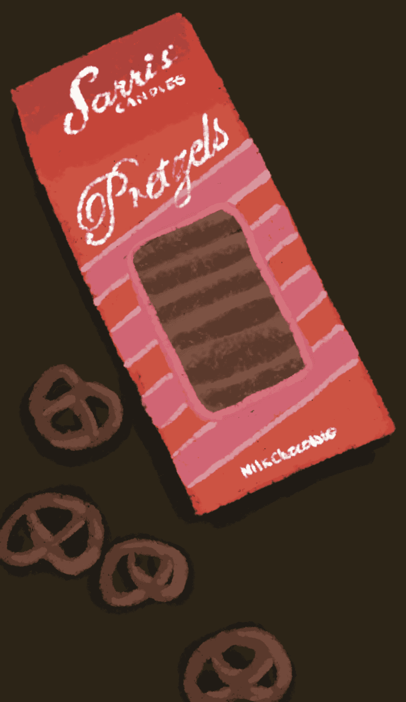 Sarris Candies is a famous Pittsburgh-area chocolate company known for its chocolate-covered almond pretzels.