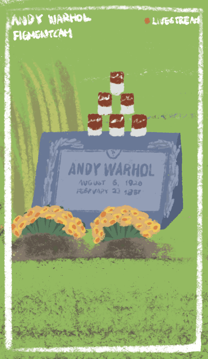 Andy Warhol is buried near Pittsburgh, and a live Grave Cam lets fans around the world leave real-time virtual tributes.
